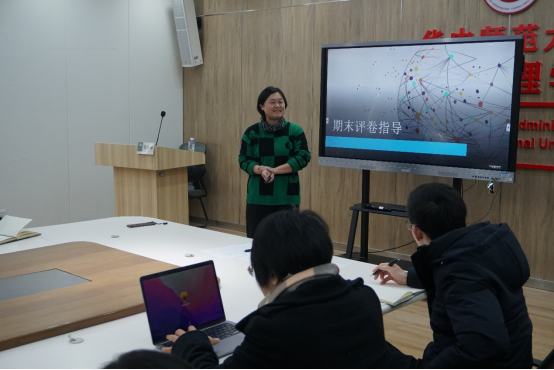 公管在线讯(通讯员:胡隆基)为进一步提高阅卷规范性,1月18日下午2:30,学院学生试卷的阅卷规范解读与实践讲座在N9002举行。学院党委书记揭辉、教师教育学院教师沈红云和全院在校教师参加了本次讲座。主讲老师张筱南副教授长期负责师范生及学科教学(语文)专业教学竞赛指导及见习工作,是阅卷工作的资深专家。张筱南副教授从试卷阅卷规范解读、规范阅卷经验分享、教师规范阅卷实践指导等三个方面对阅卷规范进行了解读与指导。在讨论互动环节,就各个老师关心的成绩评分比例设置、阅卷中各项表格的填写、课程目标达成评价计算过程等相关问题,张筱南副教授一一做了解答。参会教师普遍反应,这次讲座安排非常及时,内容全面且实用,为提升阅卷工作的规范性起了很大的促进作用。
