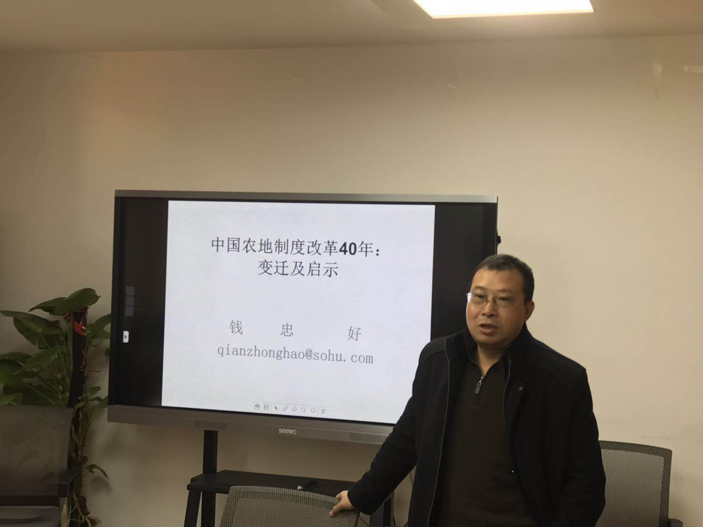 讲座最后阶段,钱忠好教授指出未来的农村制度改革,切入点应该是努力获取制度环境变化后形成的外部利润,方向应该是不断明晰土地产权且让农民获得充分的土地权利,路径选择应该侧重于制度边际上的调整,方案的选择应该努力达成农民与政府的一致同意。