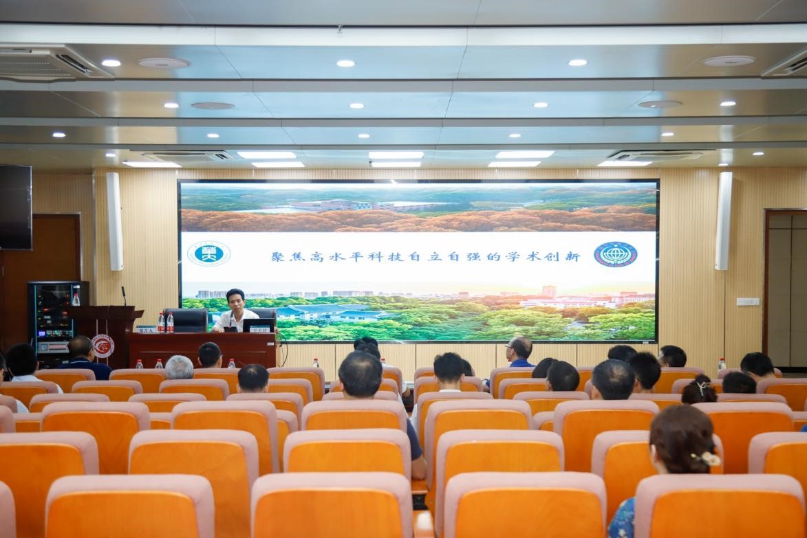 吴善超研究员以“聚焦高水平科技自立自强的学术创新”为题作汇报,分享了关于科技创新发展态势、科学问题与学术研究等方面的研究体会。他表示,党的二十大明确了教育、科技、人才共同支撑中国式现代化的基础性、战略性地位,高等学校作为基础研究的重要阵地,应主动适应科技革命、产业变革及科研范式转型的需要,在新时代国家创新体系中找准战略定位,更好发挥支撑发展、引领未来的独特作用。此外,吴善超研究员还根据自己多年的科学基金管理经验分享了如何写好自然科学基金申请书、申报基金项目的经验和心得。在互动环节,信管学院院长李玉海教授、物理学院院长张本威教授等与吴善超研究员就当下中国高校如何对接国家战略需求、如何平衡自组织科研与有组织科研等相关议题进行了充分交流。