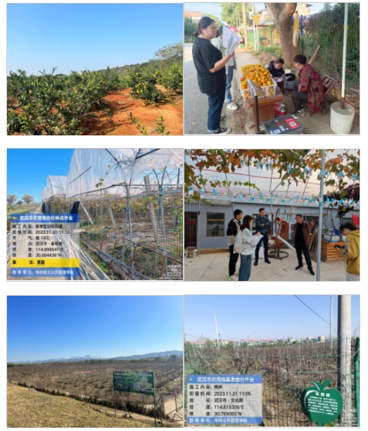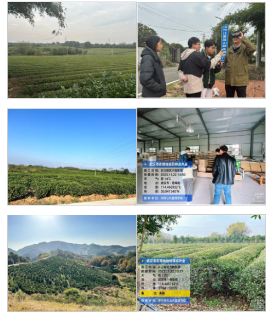 正式调研伊始,团队首先基于预调研的经验教训,根据城市“圈层—方向”两个维度均衡分布的原则,结合三调数据选取江夏区、新洲区、蔡甸区、汉南区、长江新区及东湖高新区在地理和物理属性上均具备代表性的样点村为主要调查对象。其次,通过召开外业工作筹备分享会,为团队成员提供样点土地基本利用现状、地形交通条件、设备操作等必要培训以确保团队成员具备必要的专业知识和沟通技巧。最后,调研团队一行25人,不仅有3位专业老师和3位经验丰富的工作人员带领,而且拉通了学院土地资源管理系本硕博不同培养层次的同学,分五组灵活推进本次农用地基准地价样点外业调查工作。在武汉市远城区的外业调研中,团队成员也深入了解了武汉市耕地、果园、茶园及林地等的农田奇迹。