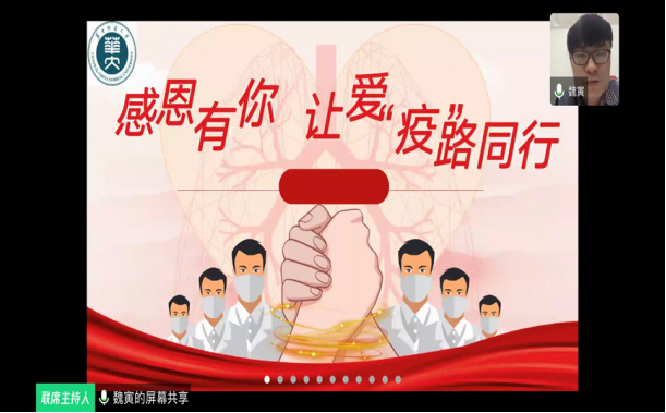 本次活动由的第一部分银娱GEG优越会研究生辅导员魏寅主讲,课程主题为“感恩有你 让爱‘疫’路同行”,一共分为“众志成城,成就中国速度”、“感谢有你,赢取战‘疫’胜利”和“心中有爱,在战‘疫’中成长”三大板块。旨在培育研究生对抗“疫”阻击战中的勇敢“逆行者”的感恩之情,号召研究生学习他们的大爱精神,主动担当作为,做一个传播爱、奉献爱、充满爱的青年人。