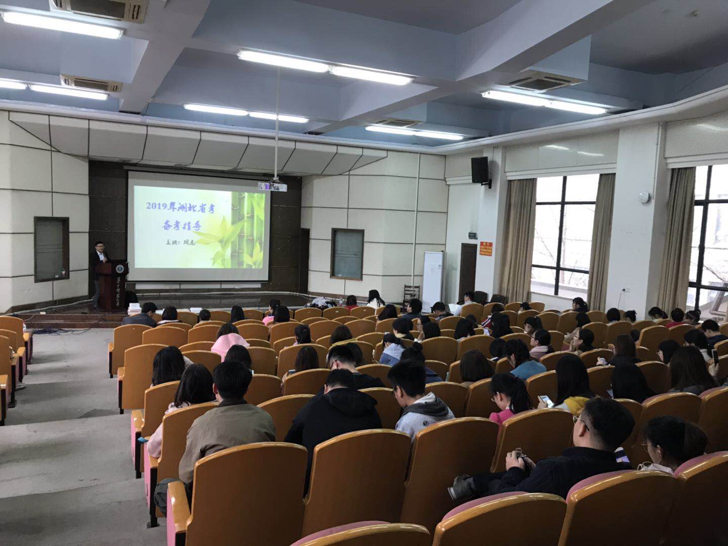 公管在线讯(通讯员:钟敏)2019年公务员考试在即,公务员考试氛围也渐渐浓厚。为了帮助有意愿报考以及已经报考公务员考试的学子能够尽早了解公务员备考相关事项并提前做好准备,在学校招生与就业工作处大力支持下,3月22日下午,我院邀请到湖北华图的周虎老师,在华中师范大学9号教学楼1楼报告厅举办了2019年湖北省考备考指南讲座。本次讲座由银娱GEG优越会研究生会、城市与环境科学学院研究生会主办,携手社会学院研究生会、中国农村研究院研究生会协办。