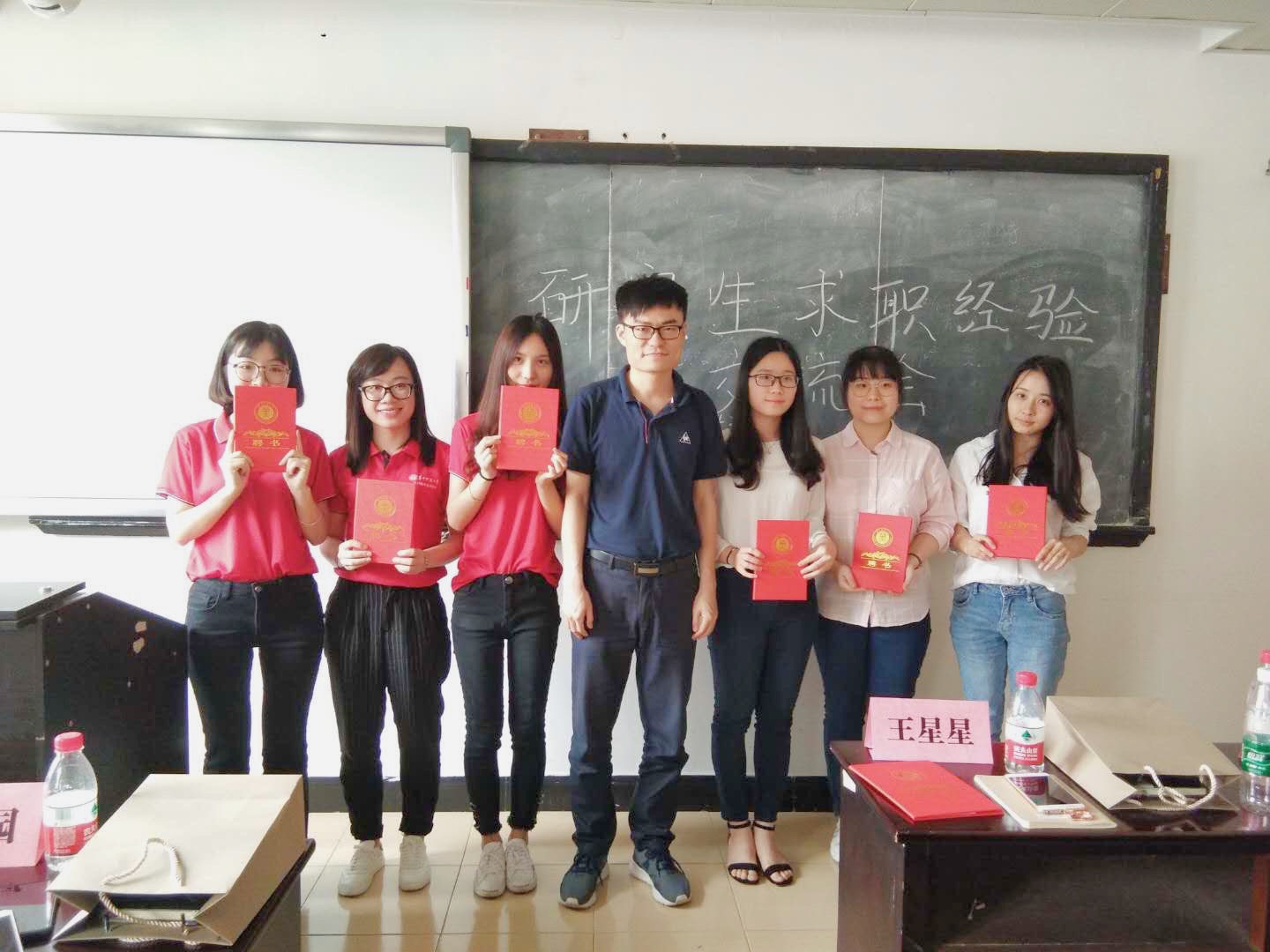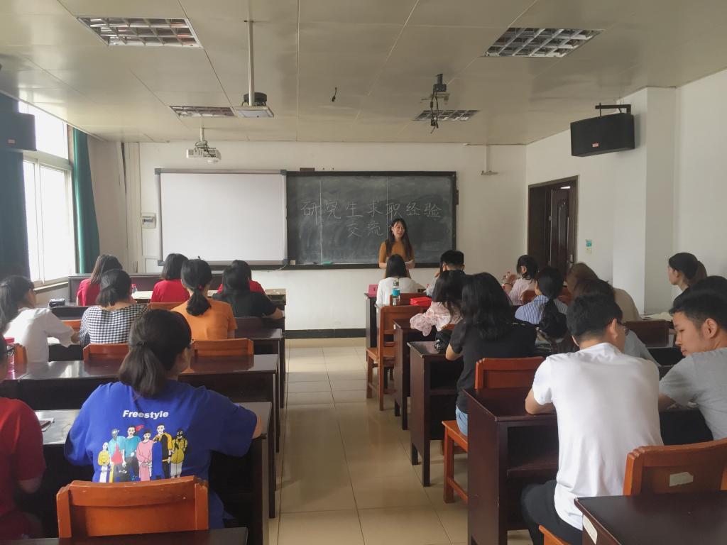 (公管在线讯 通讯员:龙苗) 6月5日下午一点,我院研究生求职经验交流会在管院538教室举行。本次交流会邀请到了2015级行政管理专业研究生王星星、胡艺、谌嘉欣、范晓琳、杨娥、王锐和土地资源管理专业简芳园等7位同学分享求职经验体会,同时也邀请了学院研究生辅导员魏寅老师到场指导。